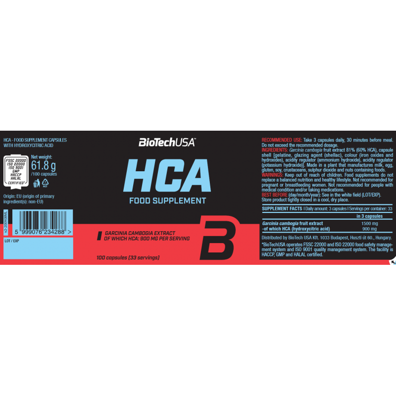 - 每3粒含有1500毫克藤黃果精華,當中有900毫克羥基檸檬酸鹽(HCA)。