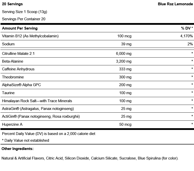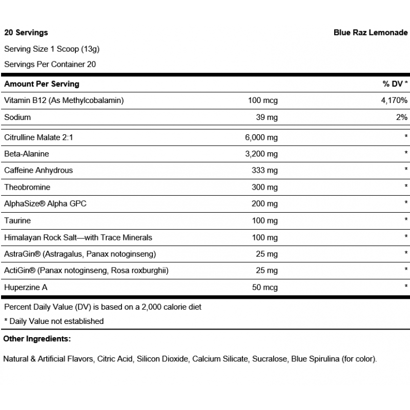 - 含6克瓜氨酸和3.2克丙氨酸 ,刺激身體一氧化氮量,延長訓練時間