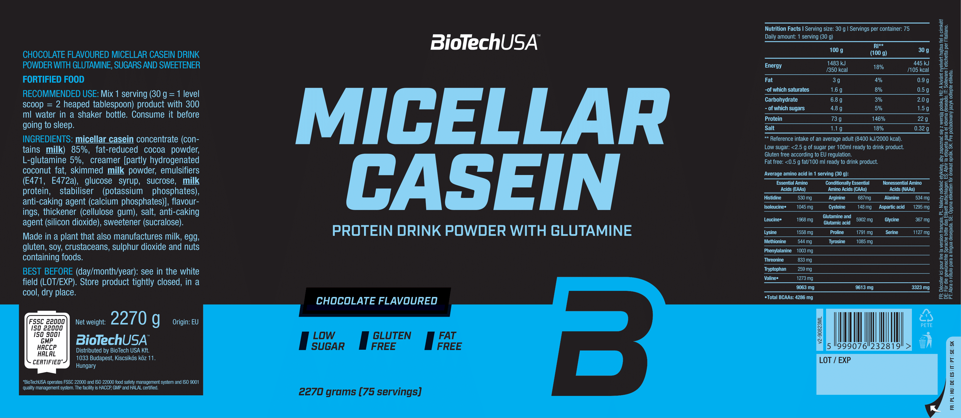 - 100%膠束酪蛋白,屬於純度最高的酪蛋白。