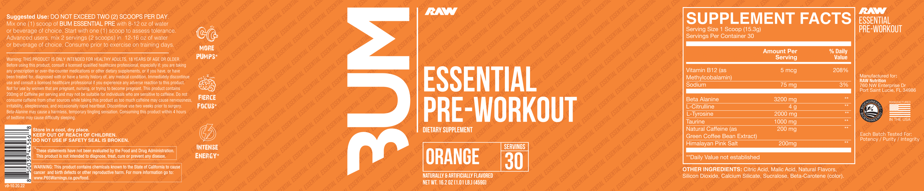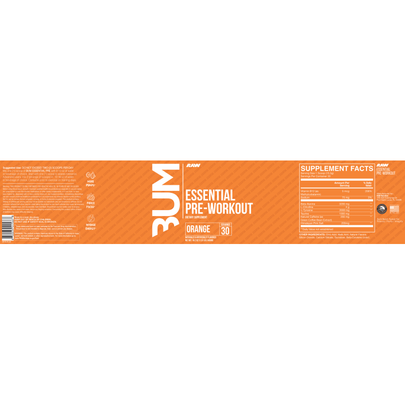 Raw BUM Essential Pre-Workout 一氧化氮 - 399-423克 (30 servings)