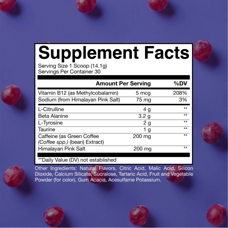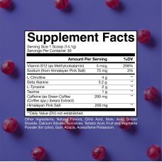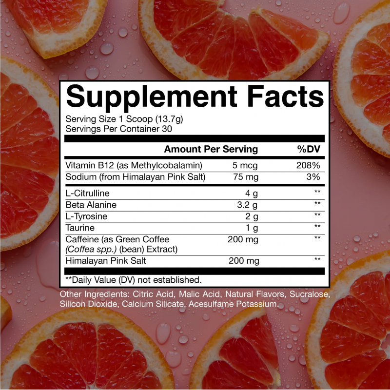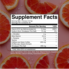 • 4克瓜氨酸,增加血液流動並提供強勁的泵感。