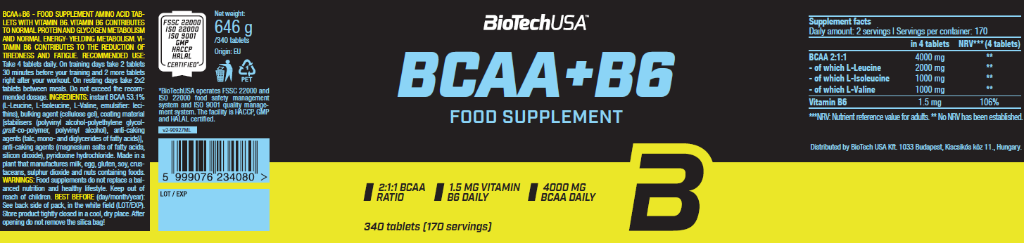 - 每粒含1000毫克支鏈氨基酸,服用一份含4000毫克支鏈氨基酸,1.5毫克維他命B6。
