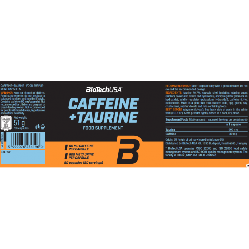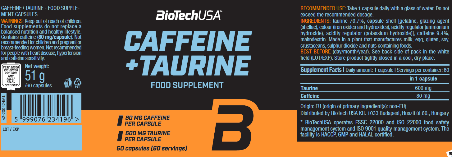 - 每份含80毫克咖啡因及600毫克牛磺酸。