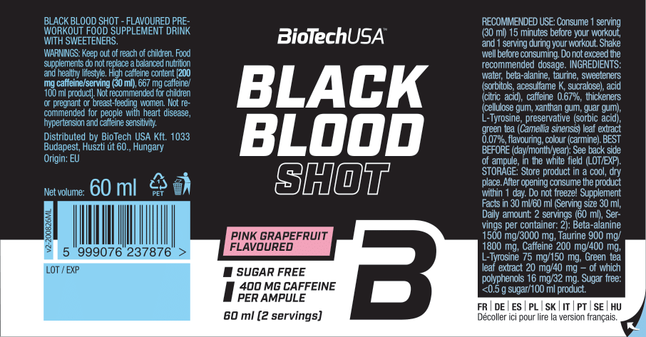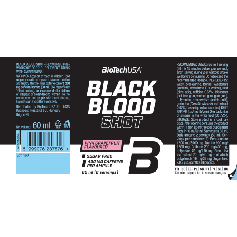 Black Blood 是眾多追求極限需求的運動員所熟知的訓練前配方!Black Blood Shot 採用全新配方,並以便利的安瓶包裝呈現,讓你能在訓練前或訓練中即刻飲用。產品含有 5 種完美劑量的活性成分。在挑選成分時,我們同樣非常重視「協同作用」的原則。