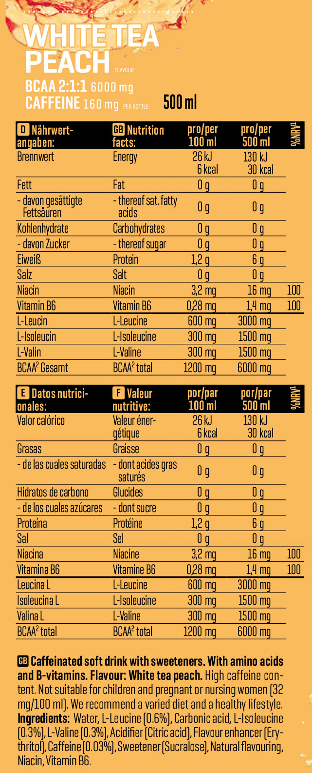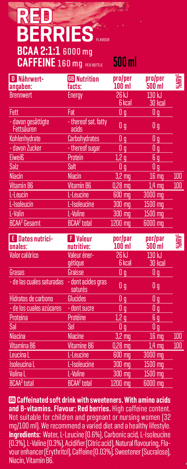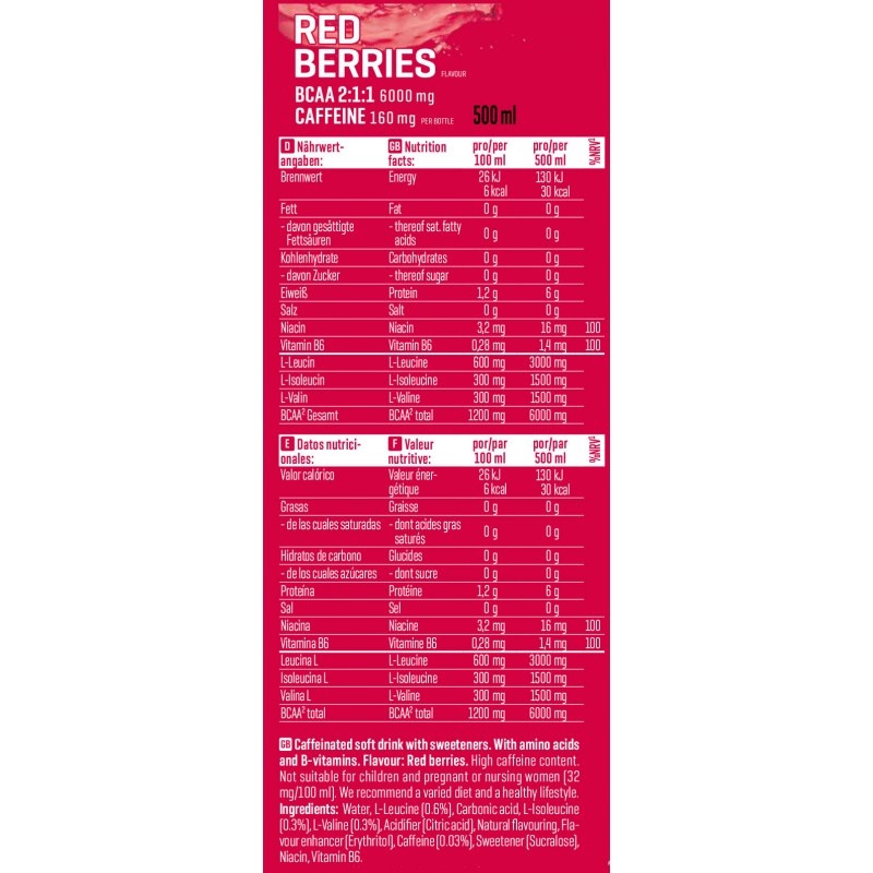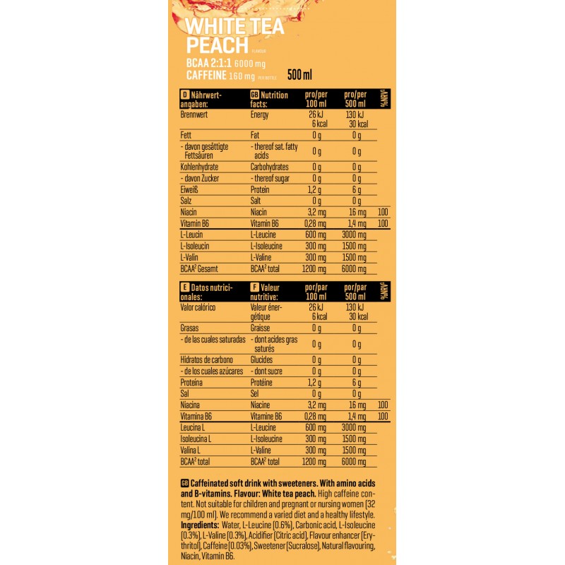 在運動前或運動中飲用一瓶(500 毫升)Body Attack BCAA Kick 氨基酸飲料,以獲得提神效果。開瓶前請充分搖勻,並可直接從瓶中飲用。當需要能量時,也可作為日間清爽飲品享用。