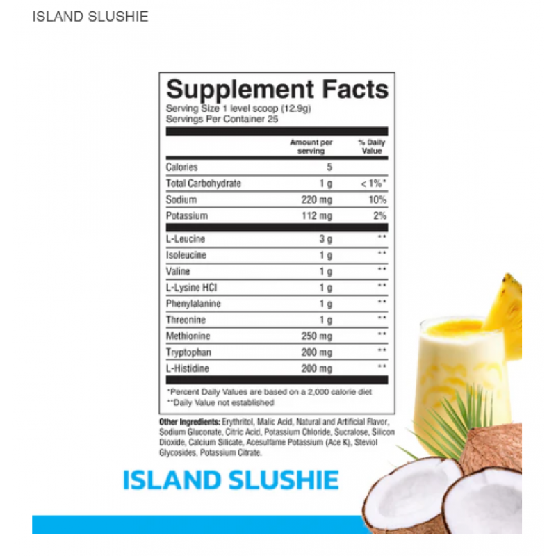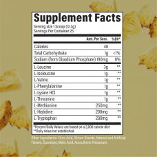 - 每份高達5毫克支鏈氨基酸,有助防止肌肉流失和身體回復。