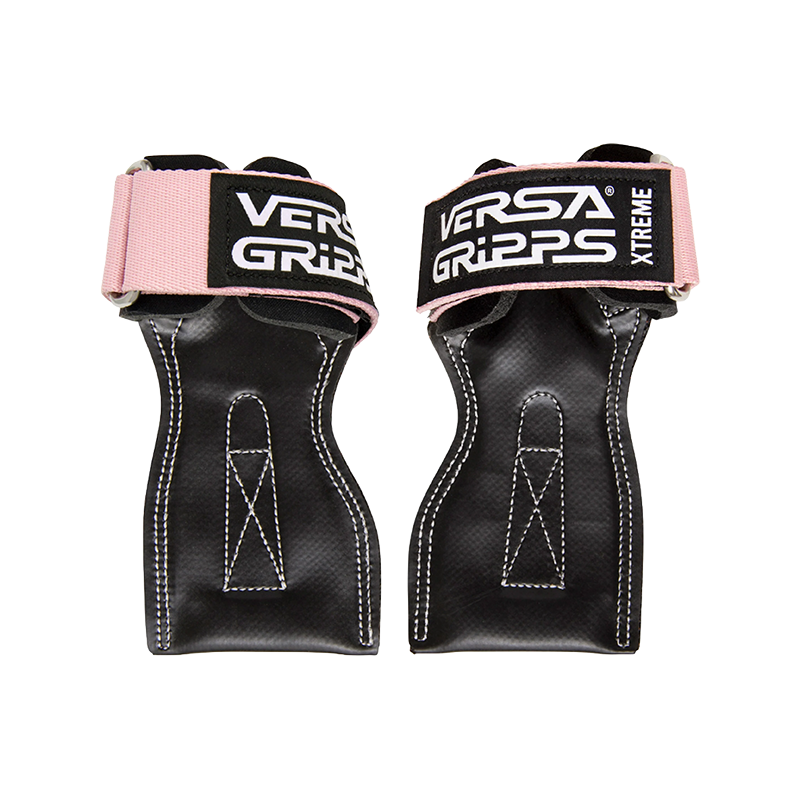 每一對 Versa Gripps 都包含一個左手握把和一個右手握把。從右手握把開始,右手握把在手腕墊下方有標籤以便識別。將標籤朝向你,將手腕帶穿過金屬環,然後將右手穿過鬆弛的圈。用手指握住掌心部分,同時用左手收緊手腕帶。左手握把也以相同方式操作。