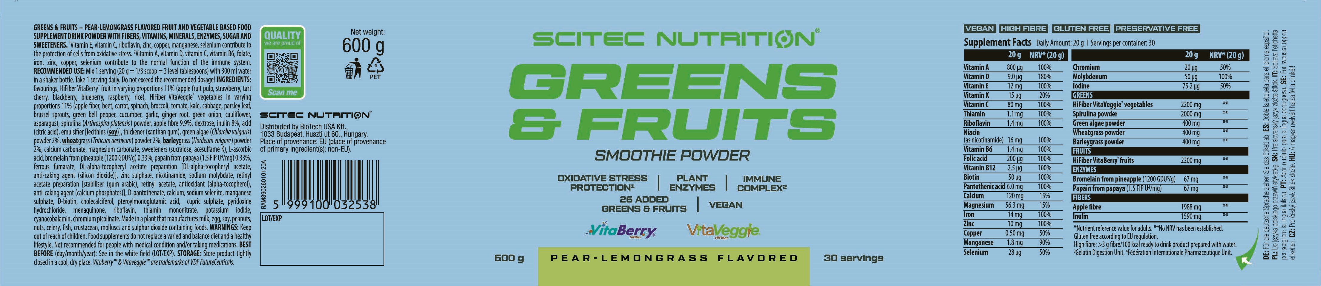 - 抽取自18款蔬菜及8款不同種類水果的精華。