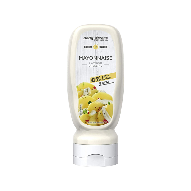 無論是沙拉還是三明治 - 與傳統蛋黃醬相比,使用 Body Attack 蛋黃醬調料可以節省大量卡路里和脂肪。 Body Attack的蛋黃醬醬口感柔滑,呈奶油狀,由植物纖維(竹子)和酒醋、鹽和各種香料等成分製成,味道無與倫比。