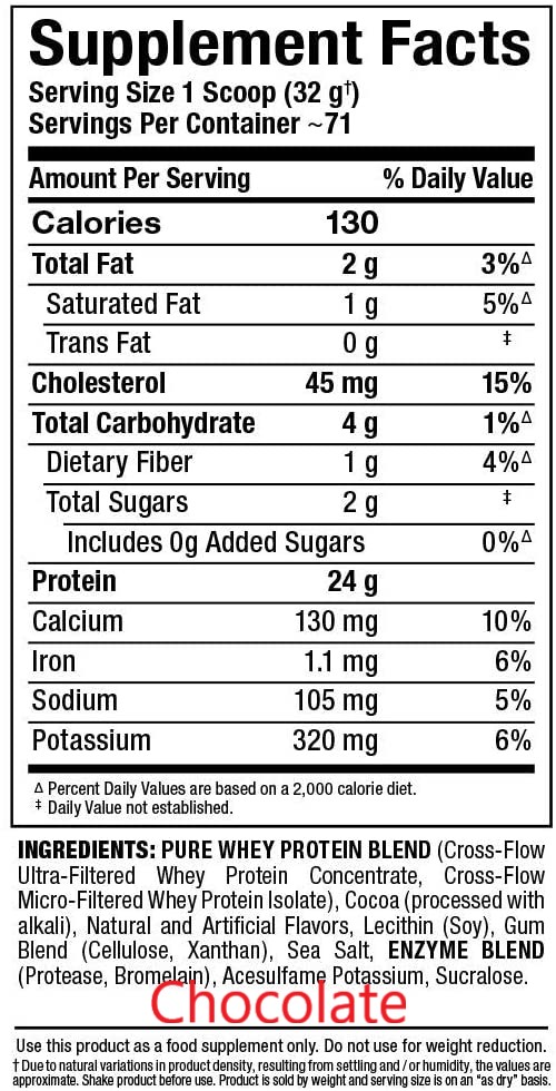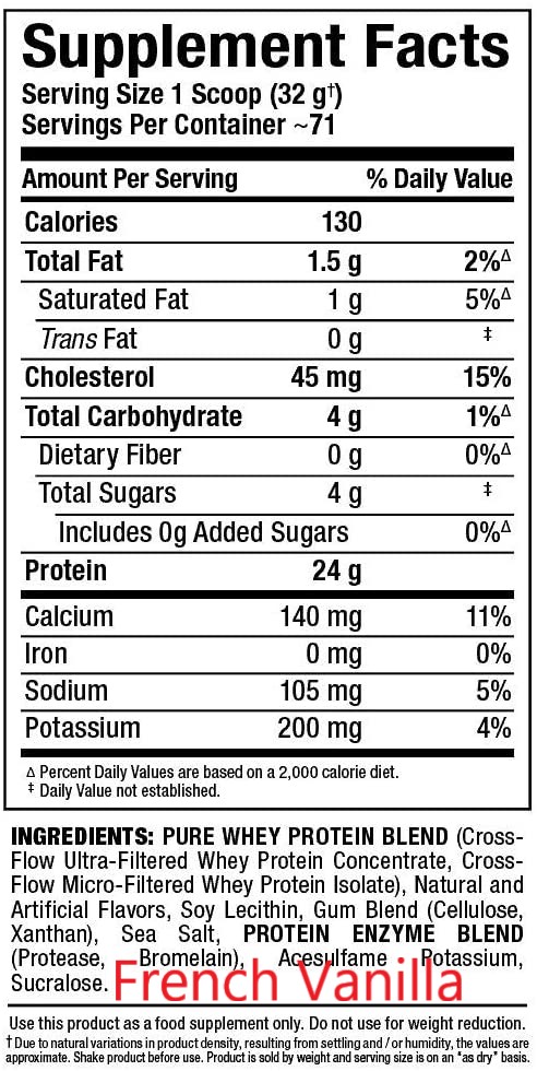 - 每匙含24克乳清蛋白,幫助增加純肌肉。