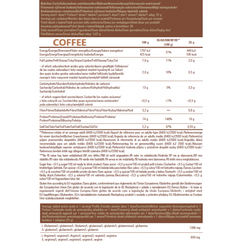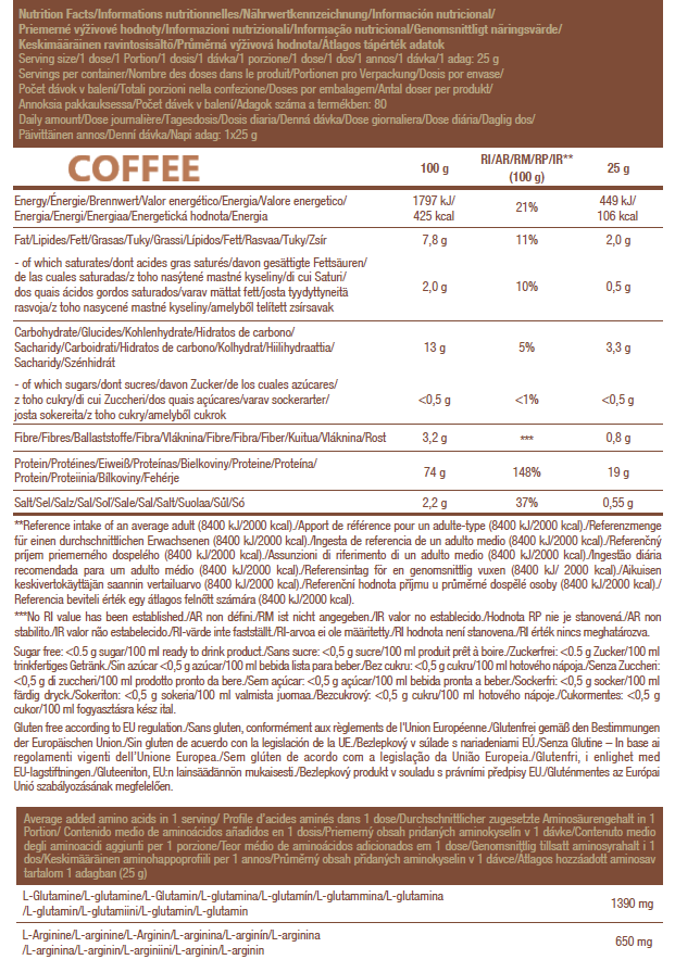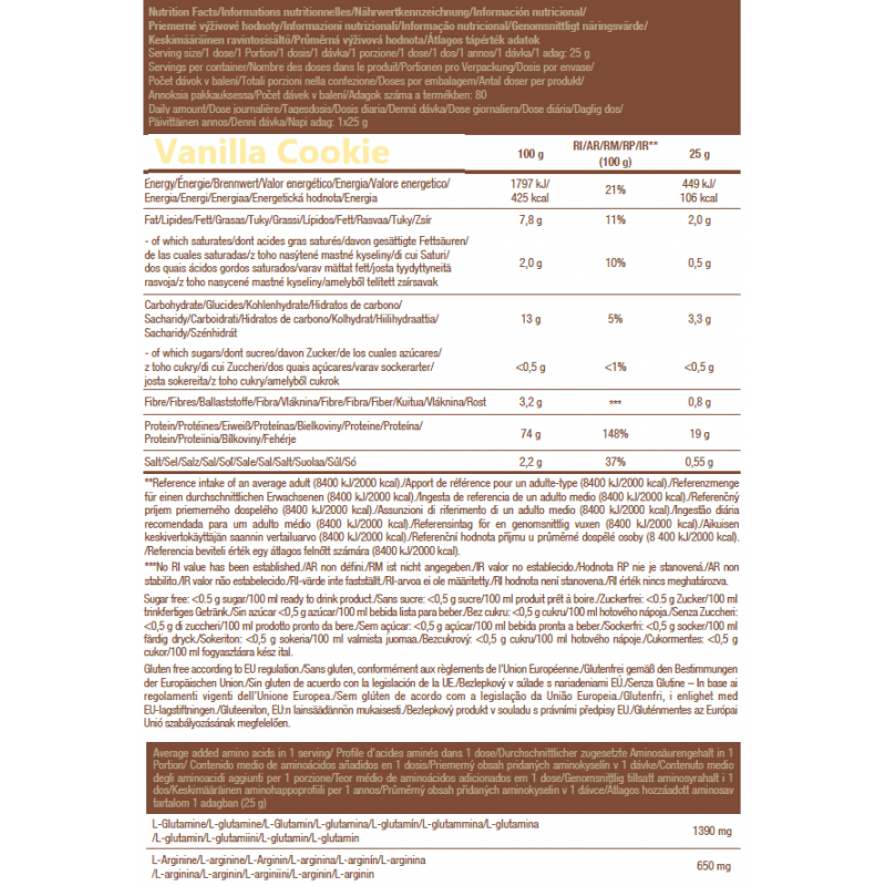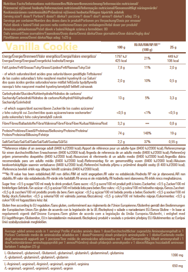 與動物來源的蛋白質不同,植物性食物並不是完整的蛋白質來源,不含有身體所需的全部必需氨基酸。然而,透過互補(結合不同的植物蛋白來源),你可以獲得一個完整的蛋白質組合。Vegan Protein透過結合兩種完美互補的蛋白質來源達成——米蛋白含賴氨酸較少,但富含含硫氨基酸(如半胱氨酸與蛋胺酸);而豌豆蛋白則含有較少的含硫氨基酸,卻富含賴氨酸。在這一優秀基礎上,還額外添加了其他營養成分。