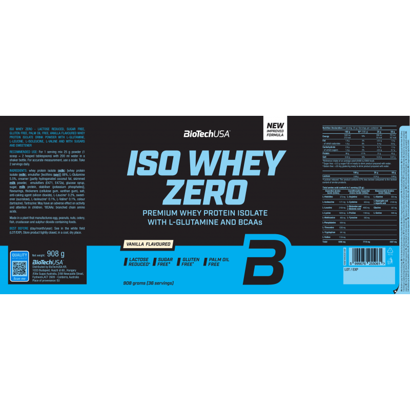 BioTechUSA Iso Whey Zero是一款優質分離乳清蛋白粉,專為運動員、健身愛好者,以及任何追求純淨、高品質蛋白質補充的人而設。低乳糖含量、極低糖分,並額外添加 BCAA(支鏈氨基酸)與谷氨酰胺(L-Glutamine),為肌肉生長、恢復及整體表現提供卓越的營養支持。